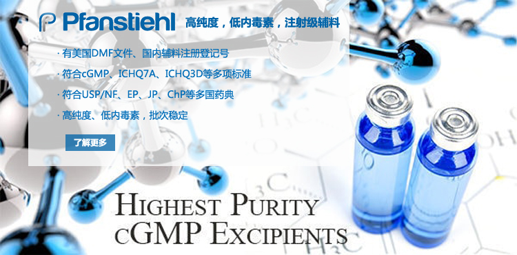 “熱烈祝賀Pfanstiehl的注射級甘氨酸Glycine(G-140)喜獲CDE登記號F20250000403, 這是Pfanstiehl產品獲得的第18個CDE登記號!”甘氨酸在醫藥輔料制劑中應用廣泛,, 可作為緩沖劑,增溶劑,穩定劑等,具有諸多優勢。Pfanstiehl秉承一貫高品質理念,為滿足全球生物制藥行業對于高品質甘氨酸的需求,隆重推出的注射級甘氨酸Glycine (G-140), 具有超高純度,超低內毒素,超低金屬殘留的特點,單獨檢測29種金屬離子,并且新增DNA,RNA,DNA酶,RNA酶和脂肪酶,亞硝酸鹽等多項質量指標的檢測,符合多國藥典規定(USP, EP, BP, JPE, ChP),可用于生物治療性藥物和疫苗的生產。產品信息:· 產品名稱:Glycine, High Purity, Low Endotoxin, Low Metals, USP, EP, BP, JPE, ChP (G-140)· 中文名稱:甘氨酸· 分子式:C2H5NO2· 分子量:75.07 g / mol· CAS號:56-40-6· 產品貨號:G-140產品特點: · 超高純度,超低內毒素,超低微生物含量,超低金屬雜質殘留· 質量指標新增DNA,RNA,DNA酶,RNA酶,脂肪酶和亞硝酸鹽檢測· 符合多國藥典:USP, EP, BP, JPE, ChP· 符合ICH Q3D標準· 符合GMP標準· 已獲DMF和CDE登記號 產品應用:· 緩沖劑· 穩定劑· 增溶劑如果您對Pfanstiehl注射級別Glycine G-140感興趣,歡迎聯系Pfanstiehl 中國區代理商北京西美杰科技有限公司獲得如下詳細的產品概況說明文件和測試樣品。Pfanstiehl Inc.最新產品系列如下,歡迎聯系北京西美杰科技有限公司獲取100g裝免費樣品。北京西美杰科技有限公司為Pfanstiehl中國代理,為客戶提供完善的技術支持與售后服務。歡迎撥打西美杰客服電話400-050-4006或者登陸網站www_xmjsci_com.mingyango2o.com了解更多信息。 更多>西美杰介紹